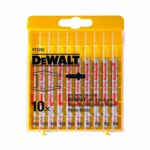 Set mit 10 Dewalt Stichsägeblättern aus Metall, perfekt zum Schneiden von Metall. Dieses Set aus 10 Klingen ist ideal für präzise Schnitte in allen Arten von Metall und ein unverzichtbares Werkzeug für Zimmerleute, Installateure und Elektriker.