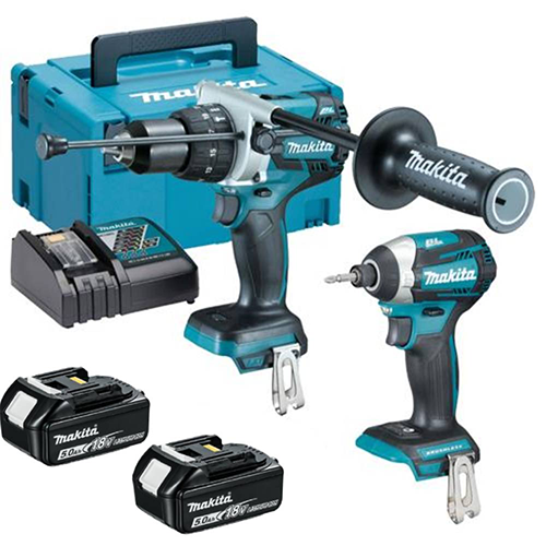 Zweiteiliges MAKDLX2176TJ-Kit mit dem Akku-Schlagbohrschrauber Makita DHP481 und dem neuen Akku-Schlagschrauber Makita DTD154. Beide bürstenlosen Geräte für höhere Effizienz und Zuverlässigkeit, weniger Lärm und längere Lebensdauer. Dieses Kit enthält 2x BL1850 5.0Ah-Batterien für die besten Laufzeiten, damit Sie Ihre Arbeit erledigen können.
