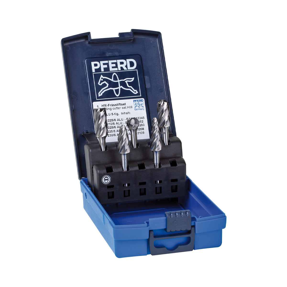 Pferd 21901612 Hartmetall Hochleistungsfrässtift Set 1612 ALU 5-tlg. Ø 12mm Schaft-Ø 6mm ALU/NE-Metalle ALU/NE